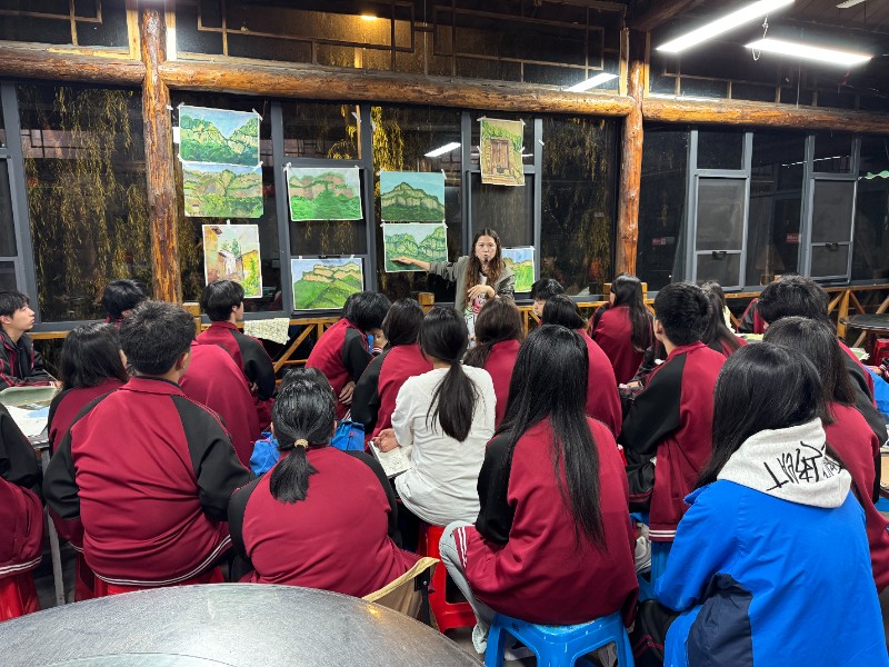 作為學(xué)校踐行“深化三教改革、推進(jìn)‘五金建設(shè)’”發(fā)展目標(biāo)的重要舉措,本次寫生活動以“實(shí)景教學(xué)”為核心抓手,精心打造特色 “金課程”。在寫生基地期間,學(xué)生全程自主完成從實(shí)地取景、構(gòu)思創(chuàng)作到落筆繪畫的完整流程。他們以大地為凳、以山石為桌,專注捕捉自然與人文交融的獨(dú)特之美,在沉浸式實(shí)踐中穩(wěn)步提升繪畫專業(yè)技能。