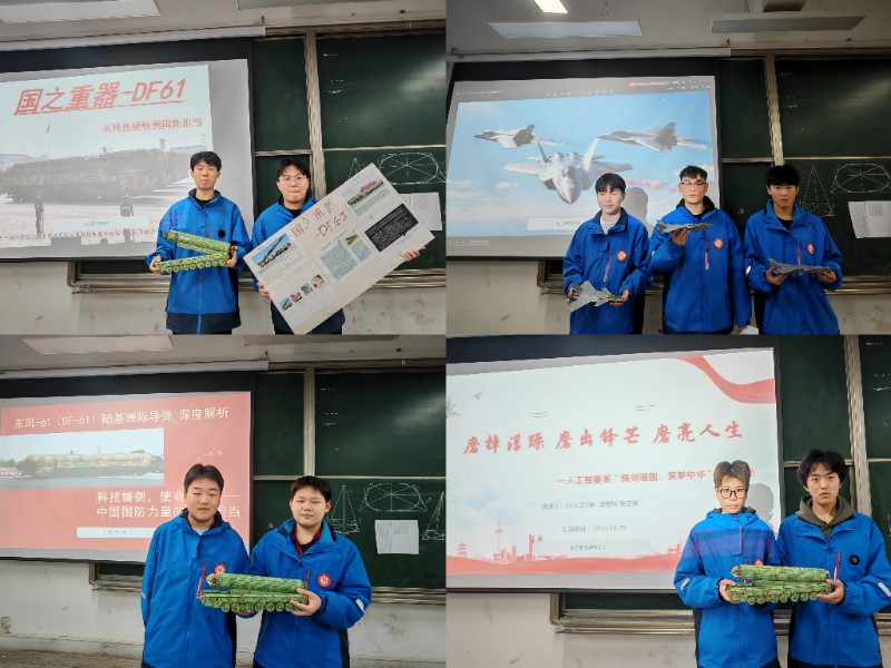 10月29日晚自習(xí)的模型解說環(huán)節(jié),將活動(dòng)推向高潮。各班選派的2名學(xué)生帶著親手完成的模型齊聚會(huì)議室,用兩分鐘時(shí)間逐一亮相講解。從武器裝備的性能特點(diǎn)到其在國防體系中的戰(zhàn)略意義,從模型組裝的技術(shù)細(xì)節(jié)到背后蘊(yùn)含的強(qiáng)國理念,學(xué)子們的講解既有專業(yè)視角,更有情感溫度。臺(tái)下師生認(rèn)真聆聽,在提問互動(dòng)中深化對(duì)“科技強(qiáng)軍”的理解,真切感受大國重器背后的科技力量與民族自豪。人工智能系教師全程參與,對(duì)學(xué)生的實(shí)踐成果與表達(dá)能力給予細(xì)致點(diǎn)評(píng),讓每一份付出都轉(zhuǎn)化為成長養(yǎng)分。